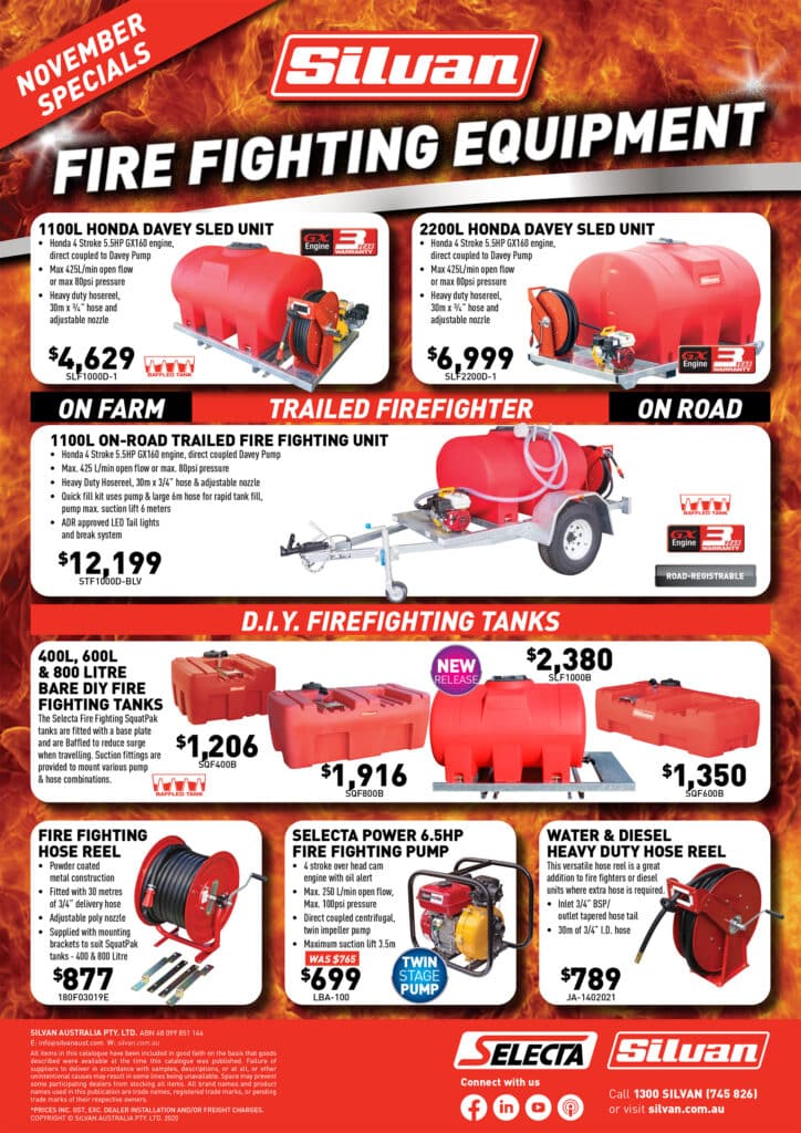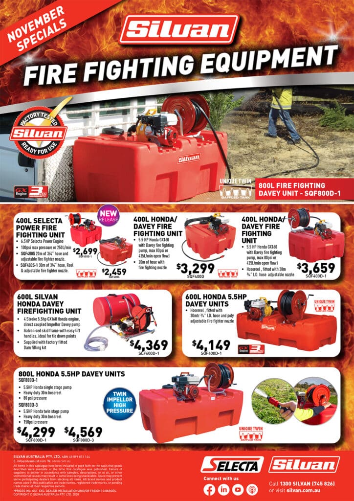 with selected 400L ,600L & 1100L Fire Fighting units